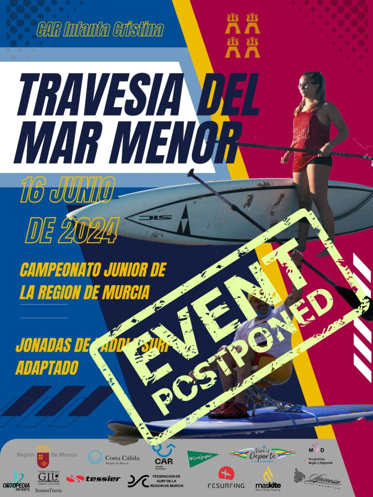 Murcia, 11 de junio de 2024 La Federación de Surf de la Región de Murcia lamenta comunicar el aplazamiento del Campeonato Junior de la Región de Murcia, inicialmente programado para el próximo domingo 16 de junio de 2024. Esta decisión se ha tomado debido a causas ajenas a nuestra organización, que han imposibilitado la realización […]